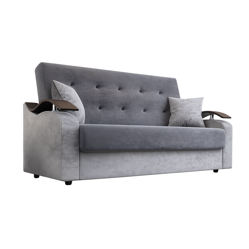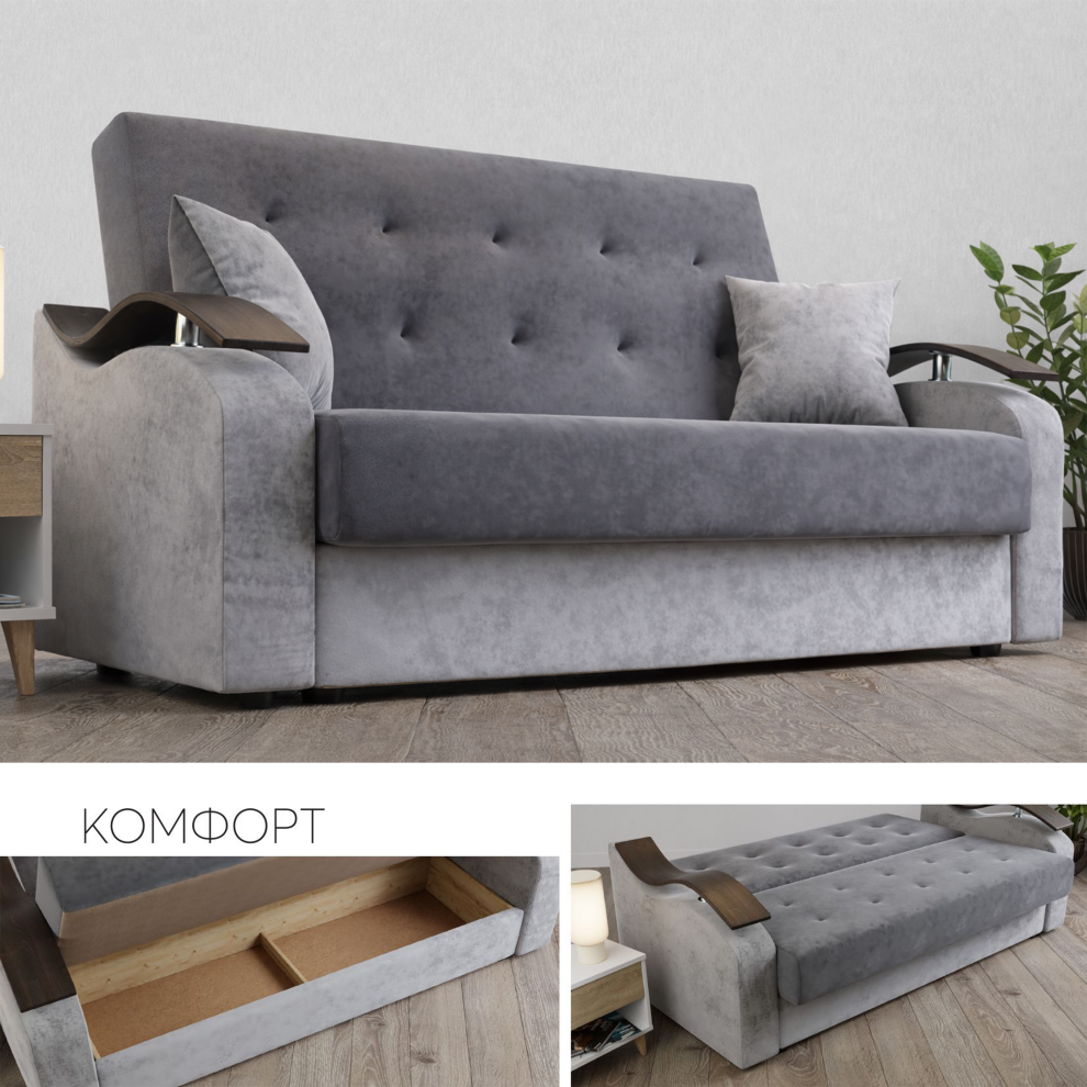 Диван «Комфорт» создан для тех, кто ценит удобную посадку, надёжность и практичность. Высокая мягкая спинка, широкое сиденье и декоративные подлокотники делают модель отличным выбором для гостиной или спальни.