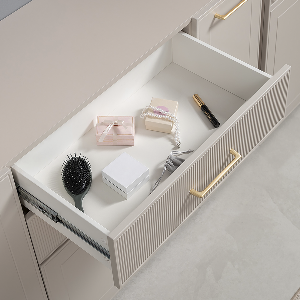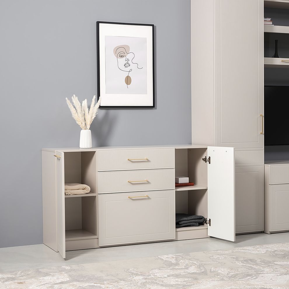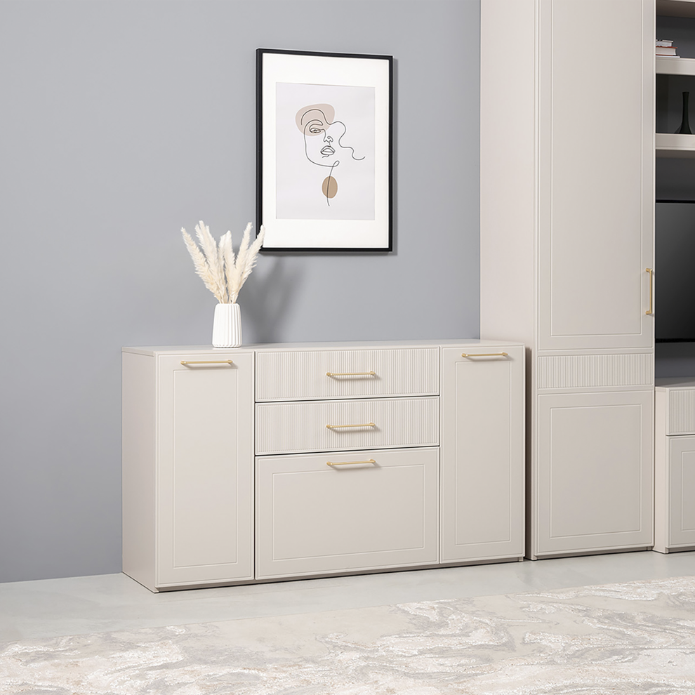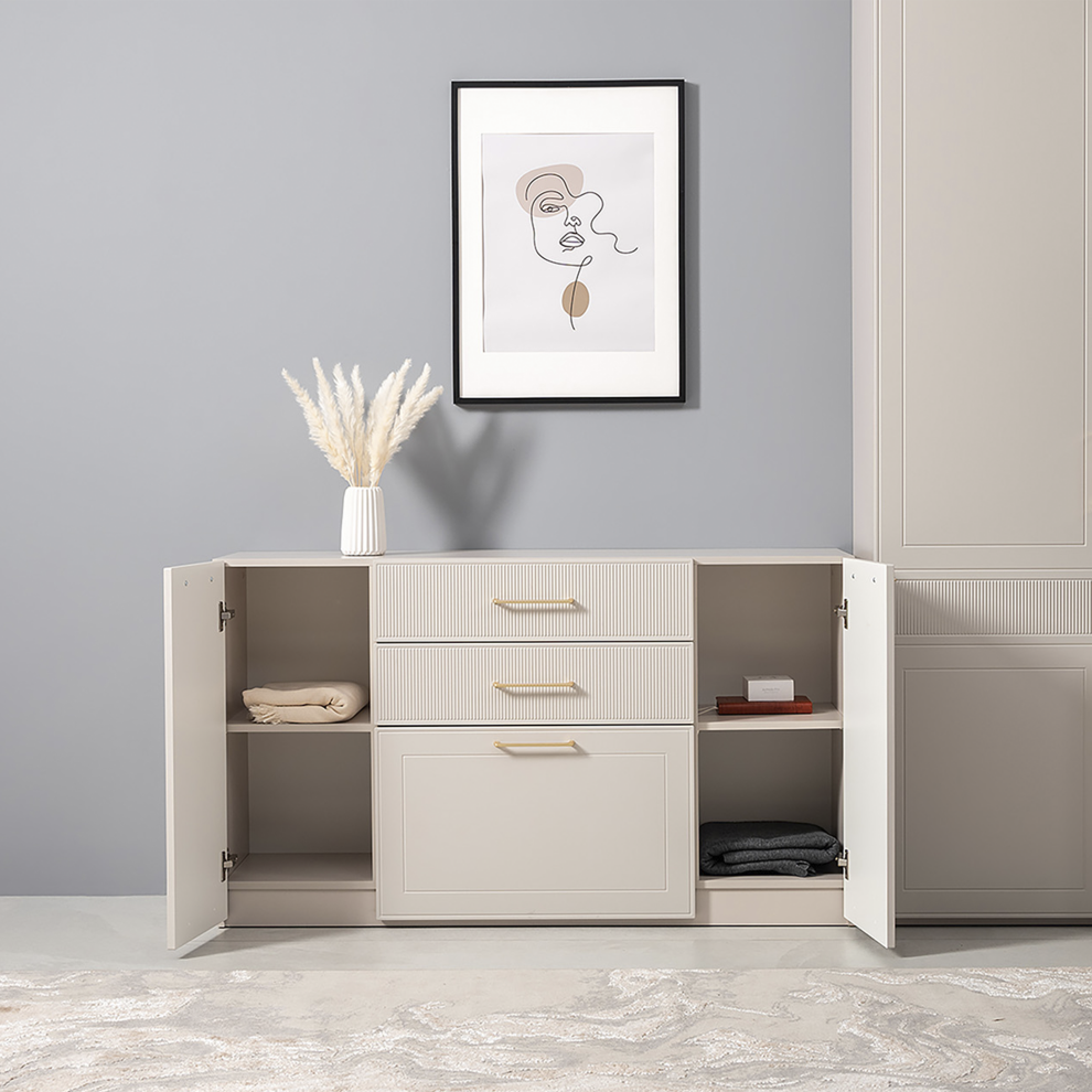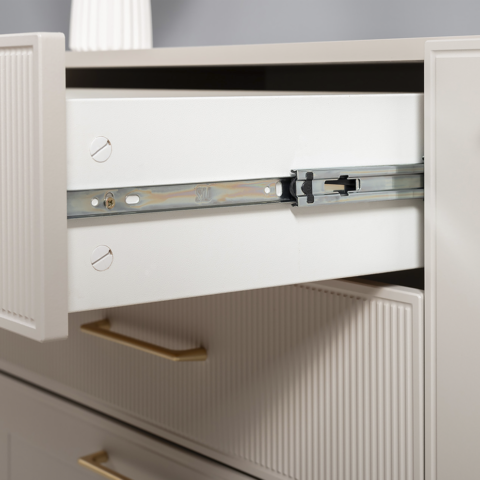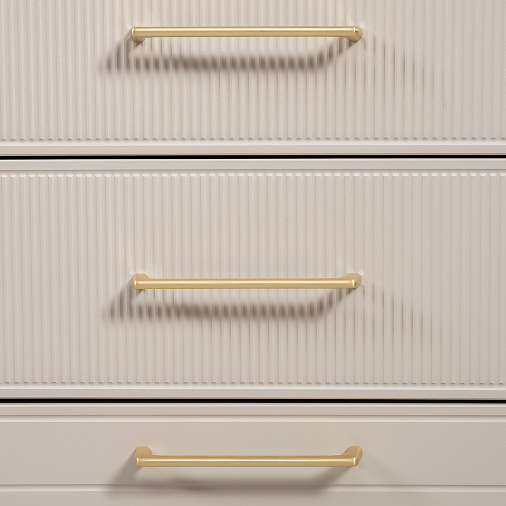 Комод «Ричфорд» — это гармоничное сочетание функциональности и утончённого дизайна. Модель выполнена в светлом универсальном оттенке, который легко вписывается в интерьер гостиной, спальни или прихожей.