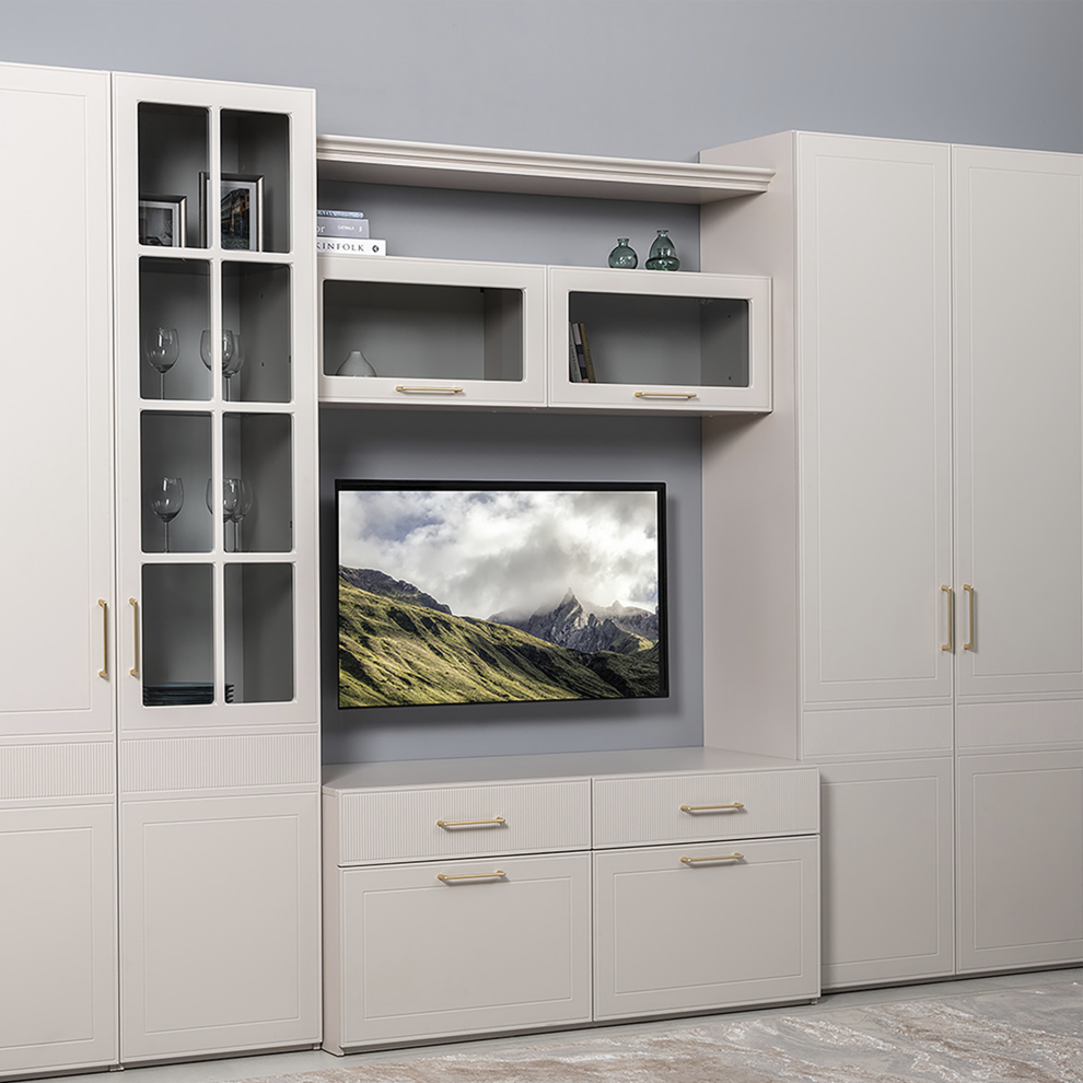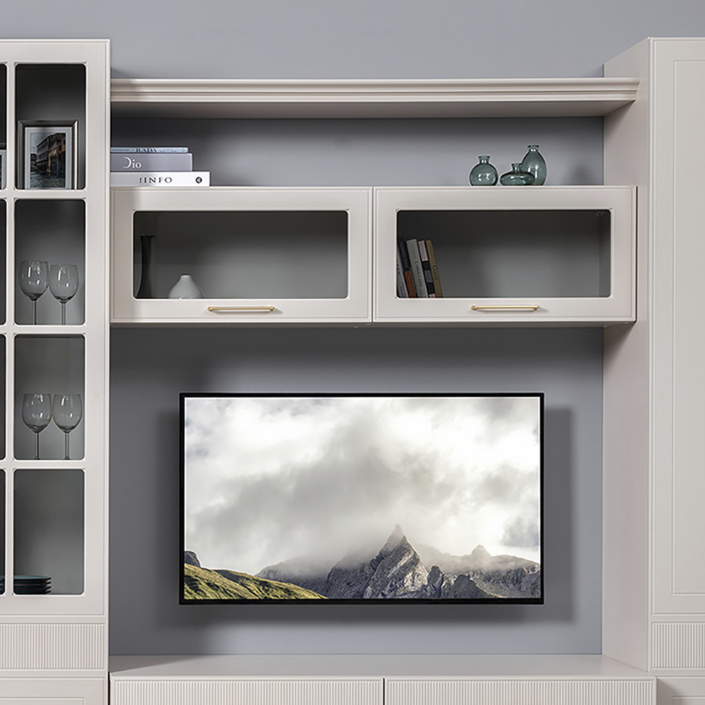 Навесной шкаф «Ричфорд» — элегантный элемент современной гостиной, сочетающий стильный дизайн и практичность. Подвесная конструкция делает интерьер визуально легче и позволяет эффективно использовать пространство стены.