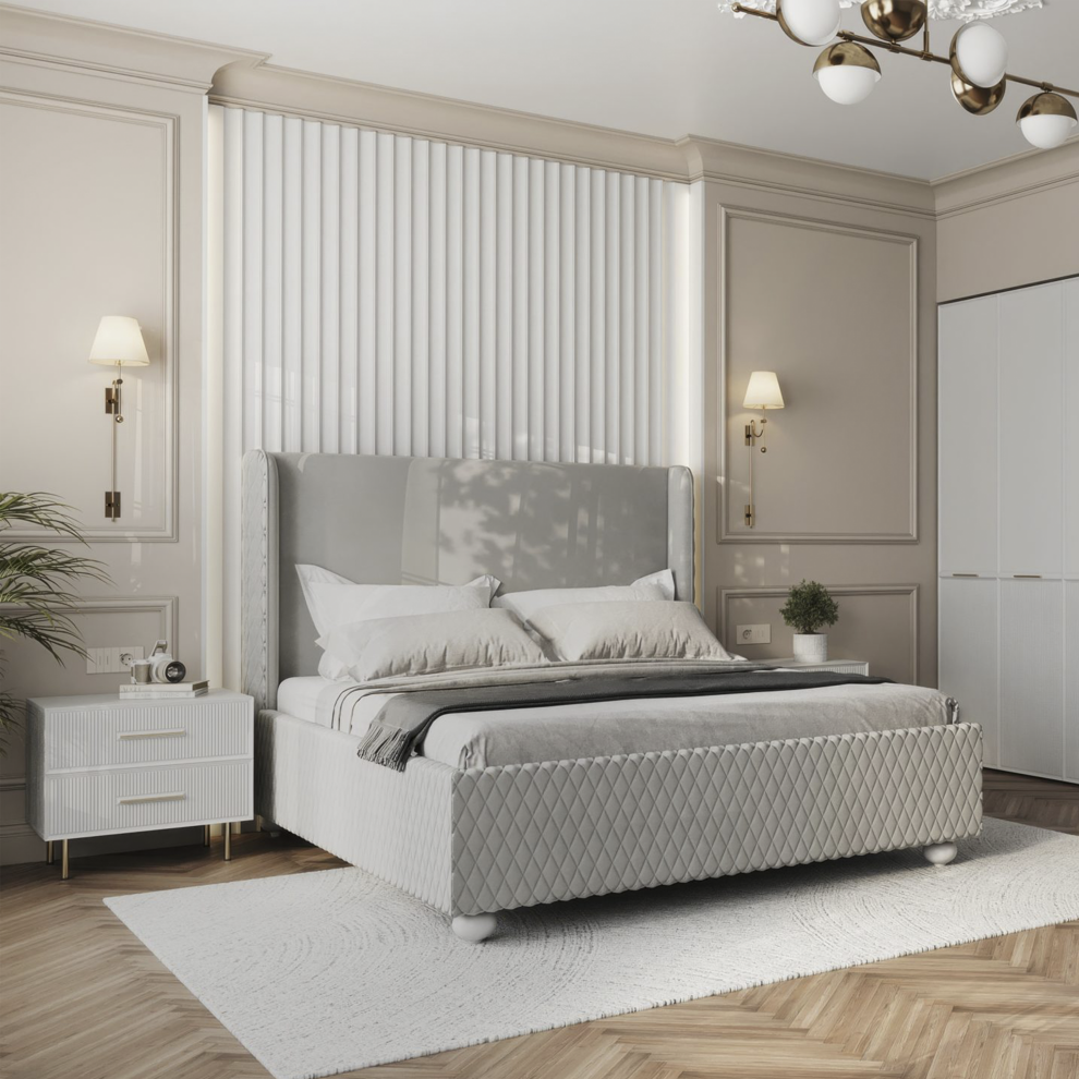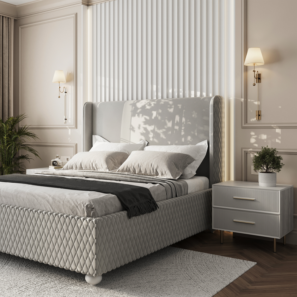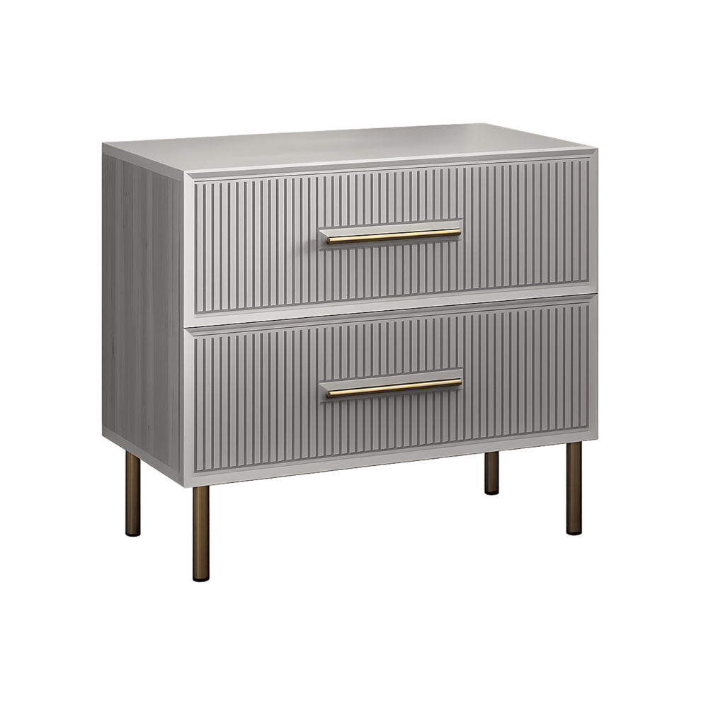 Прикроватная тумба «Венеция» сочетает изысканный дизайн и практичность, создавая гармоничное пространство у кровати. Элегантные рифлёные фасады придают мебели выразительную фактуру, а изящные металлические ручки и ножки добавляют интерьеру лёгкости и утончённости.