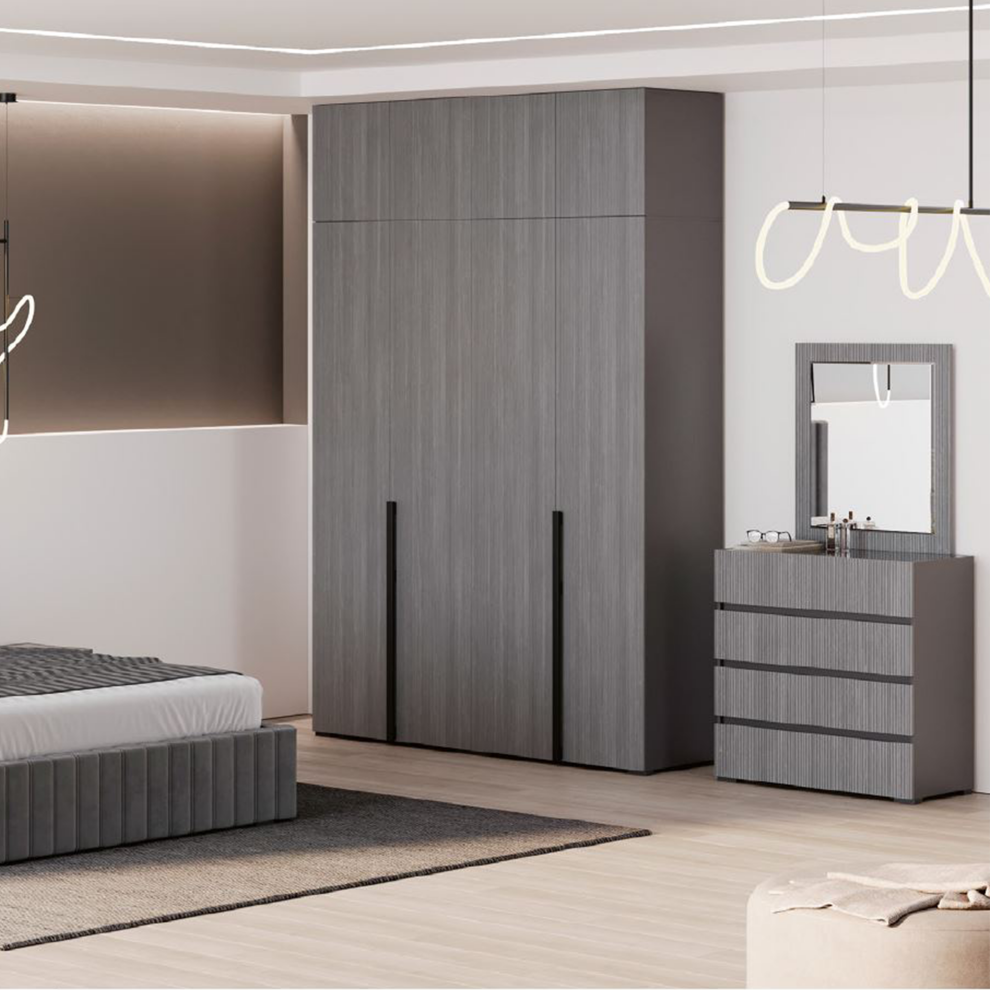 Шкаф Беллуччи — современное решение для спальни, прихожей или гостиной. Рельефных фасады придают мебели выразительный внешний вид, а удобные полки помогают рационально организовать пространство.