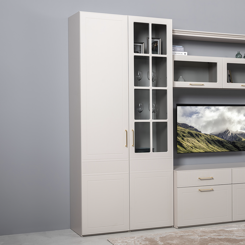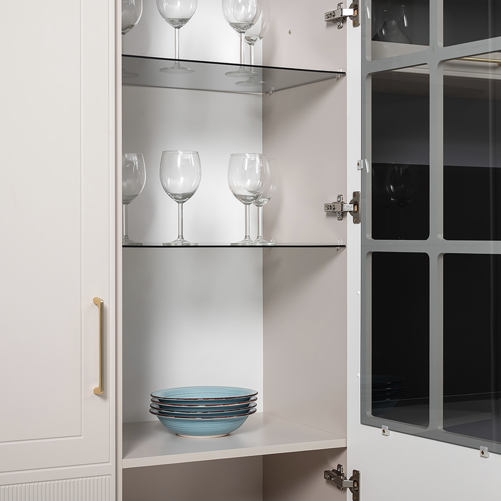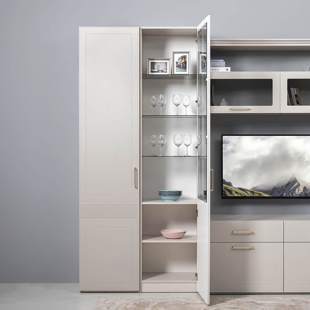 Шкаф-витрина «Ричфорд» — стильное и функциональное решение для современной гостиной. Благодаря стеклянному фасаду мебель позволяет не только хранить вещи, но и красиво демонстрировать интерьерный декор, посуду или книги.