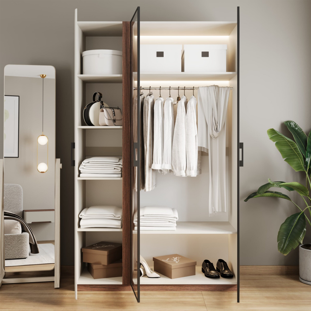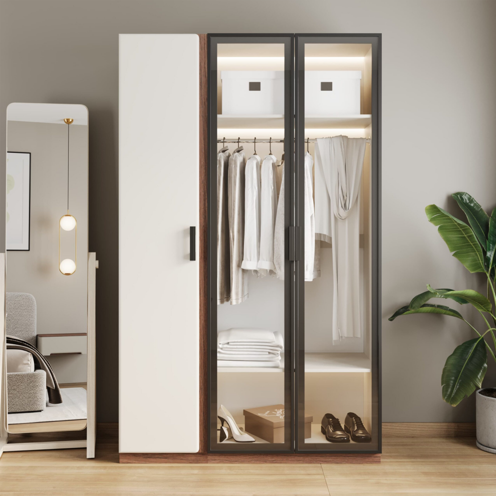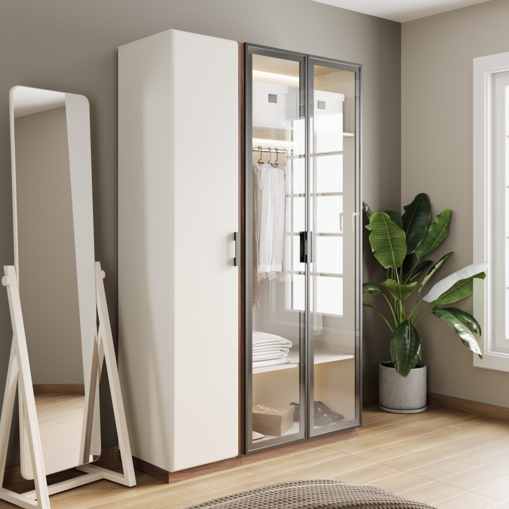 Шкаф с рамочным фасадом и подсветкой «Мирелла» — это сочетание современного дизайна, функциональности и премиальной эстетики. Стеклянные фасады в стильной тёмной рамке придают модели лёгкость и изысканность, а встроенная подсветка подчёркивает внутреннее пространство и делает хранение одежды ещё удобнее