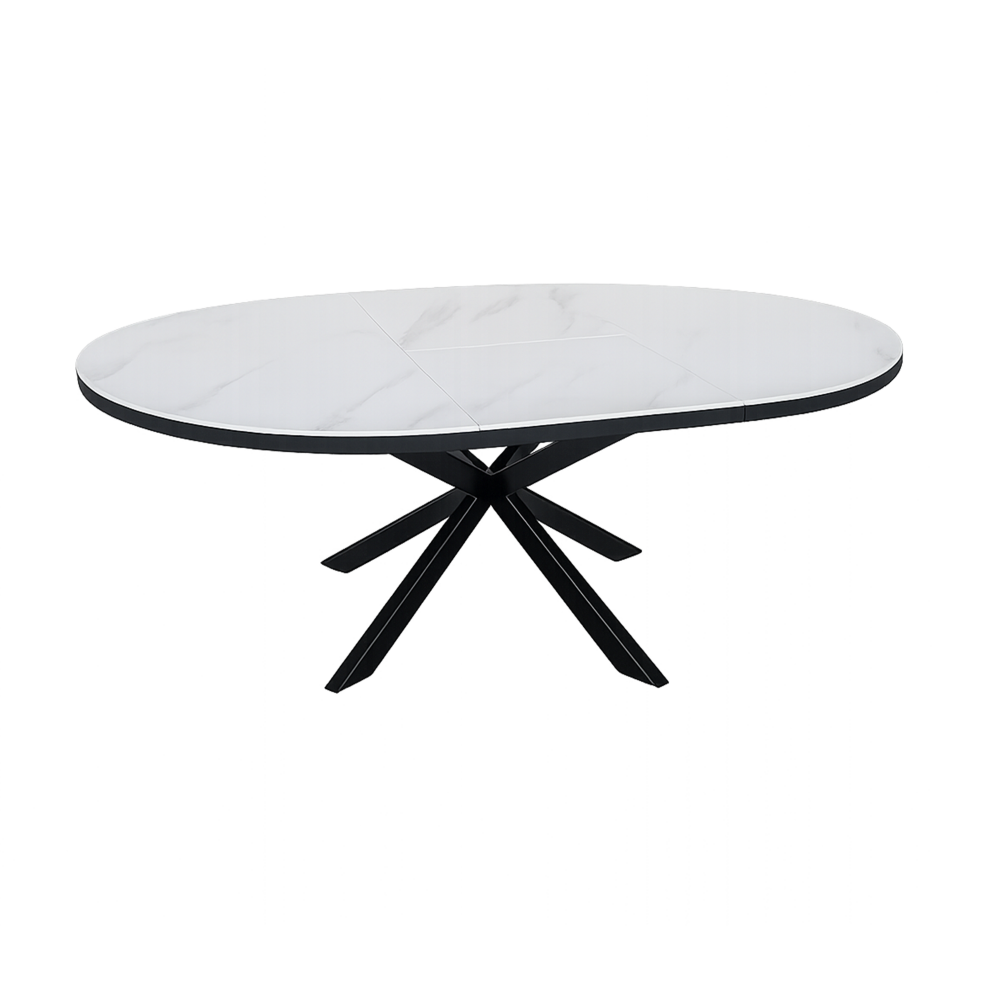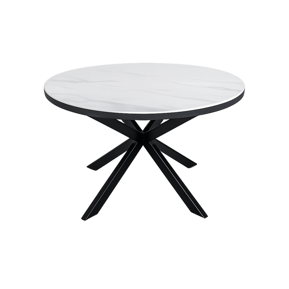 Стол «Мадейра» — элегантный круглый стол с выразительным дизайнерским основанием, который создаёт ощущение уюта и визуального баланса в интерьере. Столешница с мраморной текстурой эффектно контрастирует с чёрным металлическим основанием, делая модель универсальной для современных пространств.