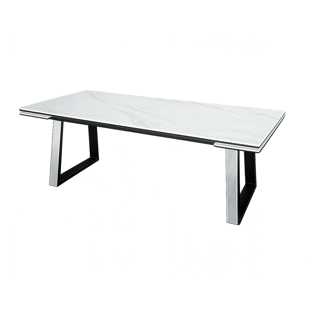 Стол «Сильвер» — современный обеденный стол с лаконичным дизайном и выразительными архитектурными опорами. Модель сочетает строгую геометрию, светлую каменную столешницу и контрастное металлическое основание, создавая стильный и актуальный образ.
