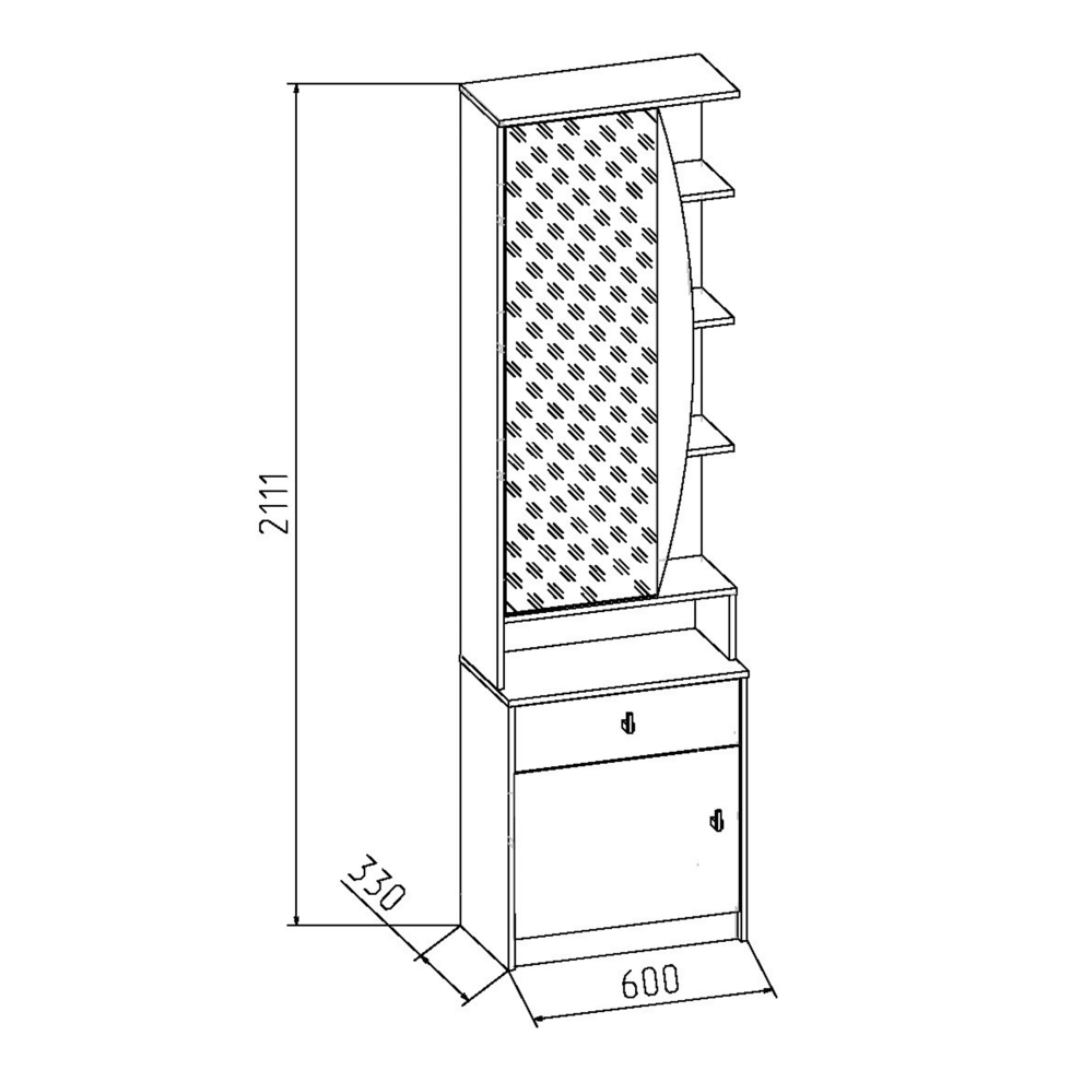 Размер: Ширина 60 см х Высота 211 см х Глубина 33 см